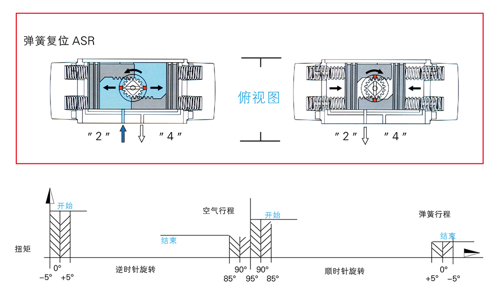 空氣行程:開始:彈簧釋放狀態(tài)下的執(zhí)行機(jī)構(gòu)扭矩 結(jié)束:彈簧壓縮狀態(tài)下的執(zhí)行機(jī)構(gòu)扭矩