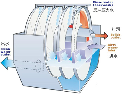 濾布轉(zhuǎn)盤微濾器與常規(guī)濾池相比的特點(diǎn)